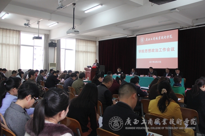 2017 年 3 月 27下午,我院于校本部教學(xué)樓報告廳召開思想政治工作會議。學(xué)院全體領(lǐng)導(dǎo)班子成員出席本次會議。學(xué)院黨委委員、紀(jì)委委員、各黨總支、直屬黨支部、各系教師黨支部、學(xué)生黨支部書記、副書記及委員、學(xué)院中層干部參加會議。