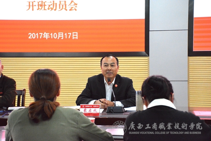 ? ? ? ? 2017 年 10 月 17 日下午,我院召開青年教師黨的基本知識專題培訓(xùn)班開班動員會,學(xué)院黨委書記覃武云作開班動員講話并主講題為《中國共產(chǎn)黨的歷史》(趕考及思考)專題理論學(xué)習(xí)第一課。本次動員會由學(xué)院黨委副書記、紀(jì)委書記蒙啟成主持,學(xué)院 35 歲以下(含 35 歲)全體青年教師共110多人作為學(xué)員參加了動員會。