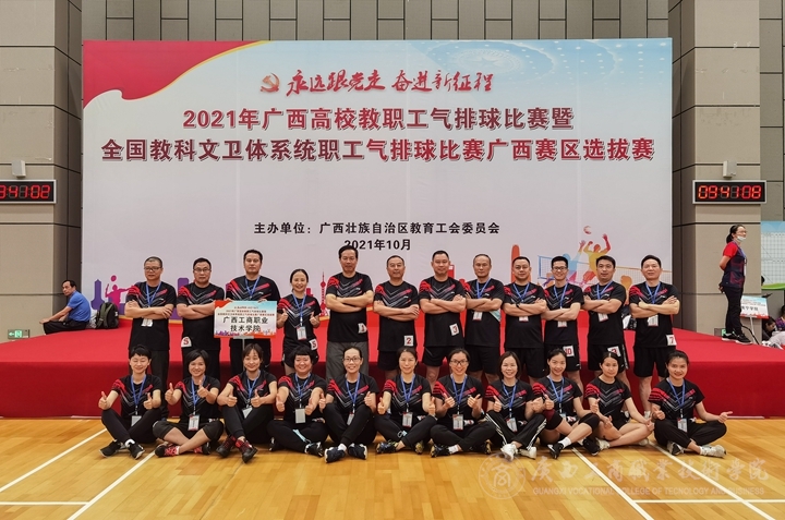 由自治區(qū)教育工會委員主辦的2021年全區(qū)高校職工氣排球比賽暨全國教科文衛(wèi)體系統(tǒng)職工氣排球比賽廣西賽區(qū)選拔賽,于10月10-13日在廣西體育中心開賽,比賽為期3天,學院組隊以學院院長李維為領(lǐng)隊的甲、乙、丙氣排球隊出征比賽。全區(qū)各高校共有101支代表隊2000多名運動員云集在一起,切磋技藝,互相學習和促進交流。