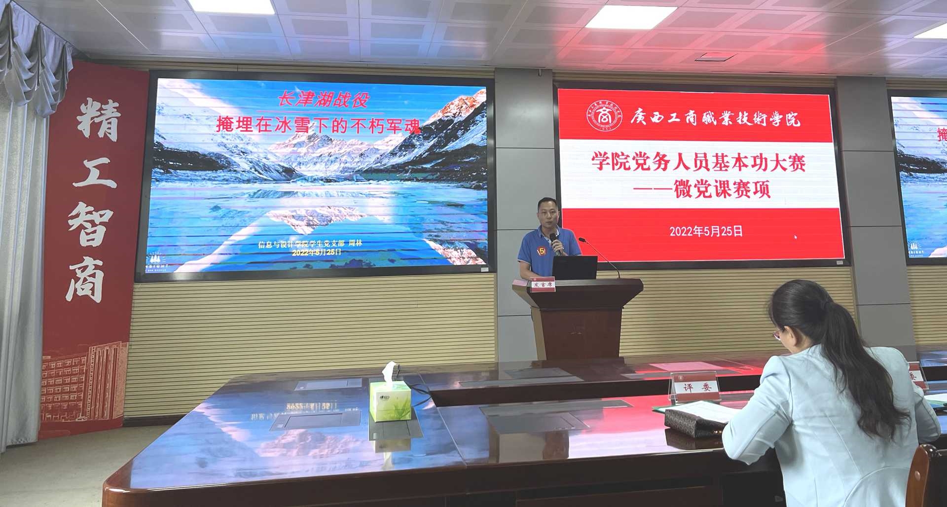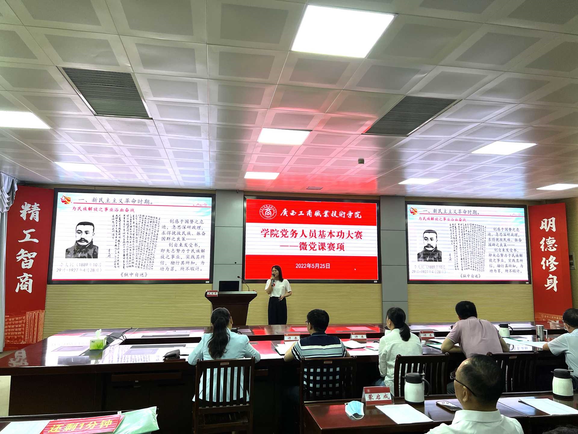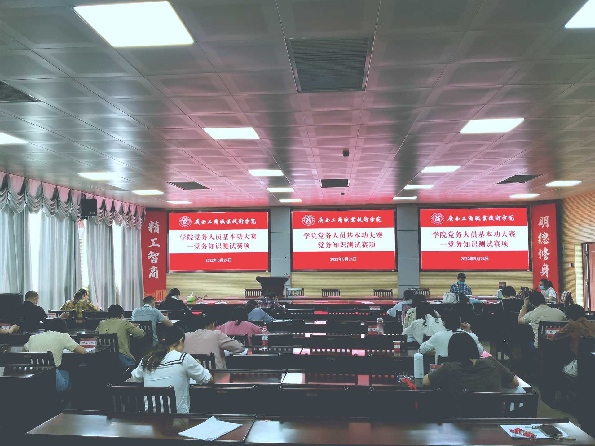 為進(jìn)一步鞏固深化黨史學(xué)習(xí)教育成果,扎實(shí)推動(dòng)學(xué)院黨務(wù)人員學(xué)習(xí)黨務(wù)知識(shí)、增強(qiáng)黨務(wù)本領(lǐng)、提高黨建工作水平,5月23日-25日,我院舉辦了黨務(wù)工作者基本功大賽,學(xué)院黨委書記覃武云同志、黨委副書記蒙啟成同志觀看了比賽。