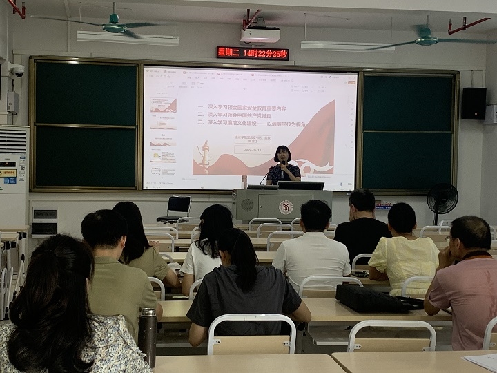 2024年6月11日下午,會(huì)計(jì)學(xué)院黨總支在A2-301組織專題政治理論學(xué)習(xí)會(huì),學(xué)習(xí)內(nèi)容涵蓋了國(guó)家安全教育、中國(guó)共產(chǎn)黨黨史以及廉潔文化建設(shè)三個(gè)重要領(lǐng)域,旨在提升學(xué)院教師們的思想政治素養(yǎng)和理論水平。本次學(xué)習(xí)會(huì)由會(huì)計(jì)學(xué)院黨總支書記、院長(zhǎng)粟衛(wèi)紅主持,學(xué)院全體教師參加。